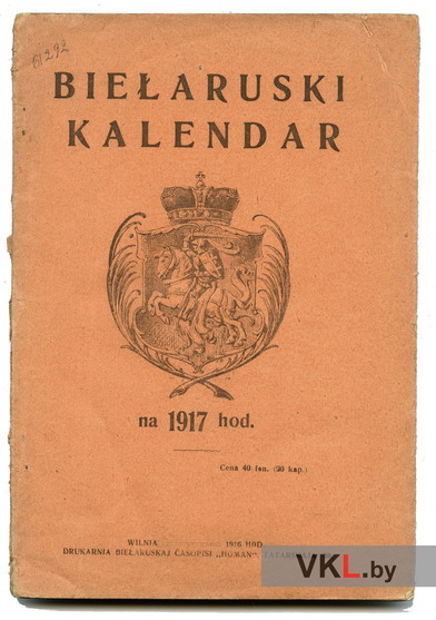 Biełaruski kalendar na 1917 hod. Wilnia: Drukarnia biełaruskaj časopisi «Homan», 1916. 48 s.