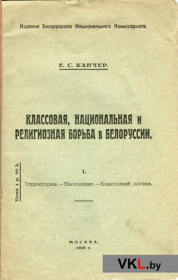 Канчер Е.С. Классовая, национальная и религиозная борьба в Белоруссии. I. Территория. Население. Классовый состав. М., 1918. 20 с.