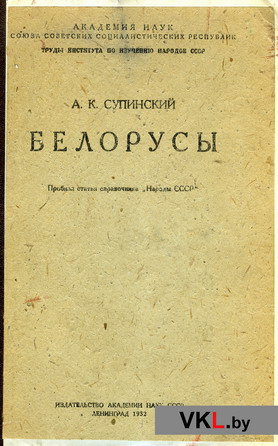 Ступинский А.К. Белорусы. Пробная статья справочника «Народы СССР». Л.: Изд-во АН СССР, 1932. 33 с., ил., карта.