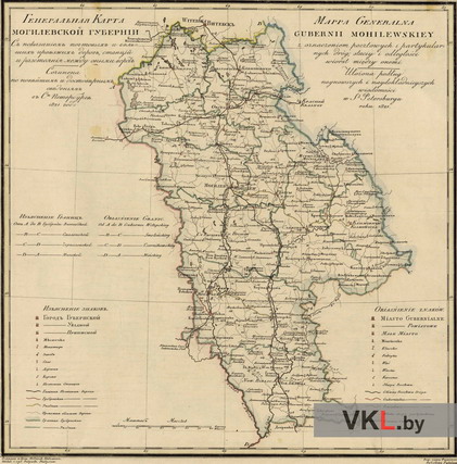 Карты: Магілёўская губерня. Магілёўская губерня 1821 г.Спампаваць у вялікім памеры
