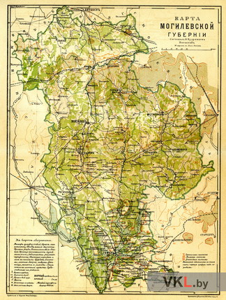 Карта Магілёўскай губерні. З кнігі: Энциклопедический словарь. Том XIXа (38). Михаила орден—Московский Телеграф / Издатели Ф.А.Брокгауз, И.А.Ефрон. СПб., 1896. Вклейка между с. 572—573.