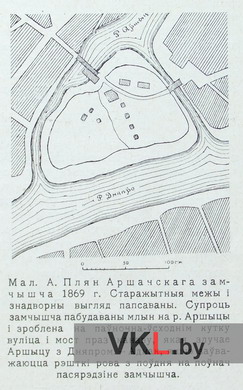 План цэнтральнай часткі Оршы ў 1869 г. З працы: Даўгяла З.І. Аршанскі замак. (Экскурс у гісторыю ўзьнікненьня яго ўмацаваньняў) // Беларуская Акадэмія Навук. Запіскі аддзелу гуманітарных навук. Кніга 11. Працы археолёгічнай камісіі. Том ІІ. Менск, 1930. С. 47.