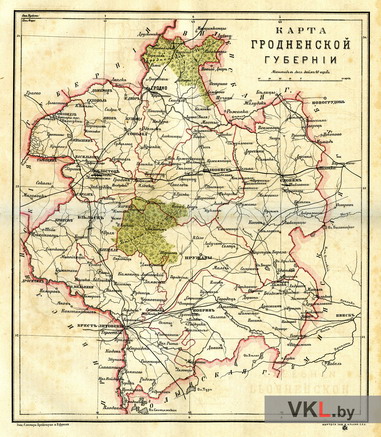 Карта Гродзенскай губерні. З кнігі: Энциклопедический словарь. Том IХа (18). Гравилат—Давенант / Издатели Ф.А.Брокгауз, И.А.Ефрон. СПб., 1893. Вклейка между с. 750—751.