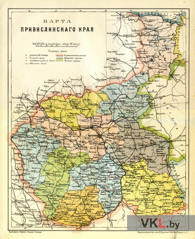 Карта Прывісленскага краю. З кнігі: Энциклопедический словарь. Том XХV (49). Праяга—Просрочка отпуска / Издатели Ф.А.Брокгауз, И.А.Ефрон. СПб., 1898. Вклейка между с. 140—141.