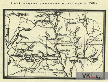 Карта Свіслацкай воласці 1560 г. З працы: Даўгяла Зьм.Ів. Сьвіслацкая воласьць у 1560 г. // Наш край. Штомесячнік Цэнтральнага Бюро Краязнаўства пры Інстытуце Беларускае Культуры. 1927. № 12 (27). С. 21.