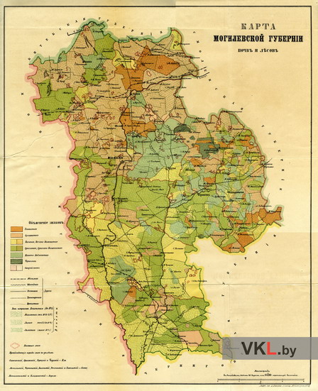 Карта глебаў і лясоў Магілёўскай губерні. З працы: Опыт описания Могилевской губернии… / Составлен по программе и под редакциею … А.С.Дембовецкого. Книга 2. Могилев на Днепре: Типография Губернского Правления, 1884.