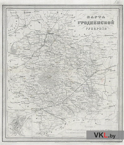 Карта Гродзенскай губерні. З атласа: Подробный атлас Российской империи с планами главных городов. СПб.: Издание картографического заведения А.Ильина, 1876.