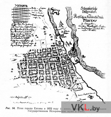 План Мітавы 1652 г. З кнігі: История Латвийской ССР. Том I. С древнейших времен до 1860 года. Рига: Издательство Академии наук Латвийской ССР, 1952. С. 248.