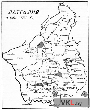 Карта Інфлянцкага ваяводства 17—18 ст. З кнігі: История Латвийской ССР. Том I. С древнейших времен до 1860 года. Рига: Издательство Академии наук Латвийской ССР, 1952. С. 259 (аўтарства не пзначана).