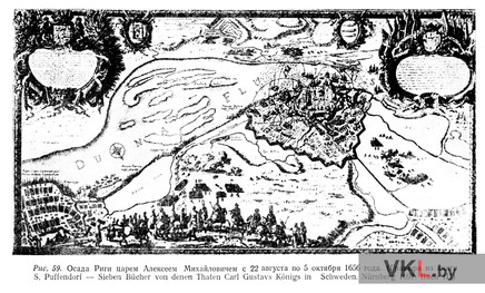 План аблогі Рыгі царом Аляксеем Міхайлавічам у 1656 г. З кнігі: История Латвийской ССР. Том I. С древнейших времен до 1860 года. Рига: Издательство Академии наук Латвийской ССР, 1952. С. 274.