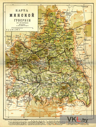 Карта Мінскай губерні. З кнігі: Энциклопедический словарь. Том XIX (37). Мекенен—Мифу-Баня / Издатели Ф.А.Брокгауз, И.А.Ефрон. СПб., 1896. Вклейка между с. 388—389.