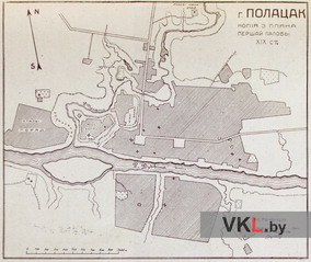 План Полацка першай паловы 19 ст. З працы: Ляўданскі А.Н. Археолёгічныя досьледы ў Полацкай акрузе // Беларуская Акадэмія Навук. Запіскі аддзелу гуманітарных навук. Кніга 11. Працы археолёгічнай камісіі. Том ІІ. Менск, 1930. С. 163.