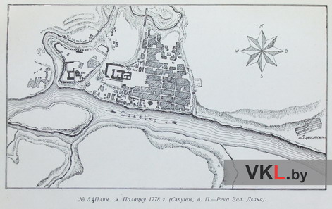 План Полацка 1778. З працы: Даўгяла Зьмітра. Polociae moenia. (Гістарычна-топографічны нарыс Полацкіх умацаваньняў) // Працы клясы гісторыі. Том ІІ. Менск, 1928. (Інстытут беларускае культуры. Запіскі аддзелу гуманітарных навук. Кніга 3). С. 239.