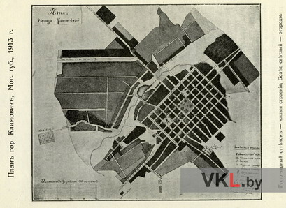 План Клімавіч 1913 г. З працы: Ярославцев С.И. Город Климовичи // Записки Северо-Западного Отдела Императорского Русского Географического Общества. Книжка 4. 1913 г. Вильна, 1914. С. 38.