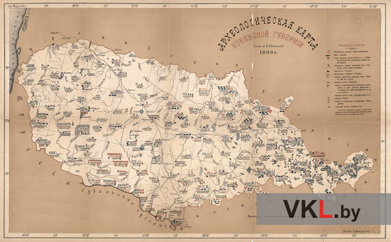 Карта помнікаў археалогіі Ковенскай губерні. З працы: Покровский Ф.В. Археологическая карта Ковенской губернии. Вильна, 1899.