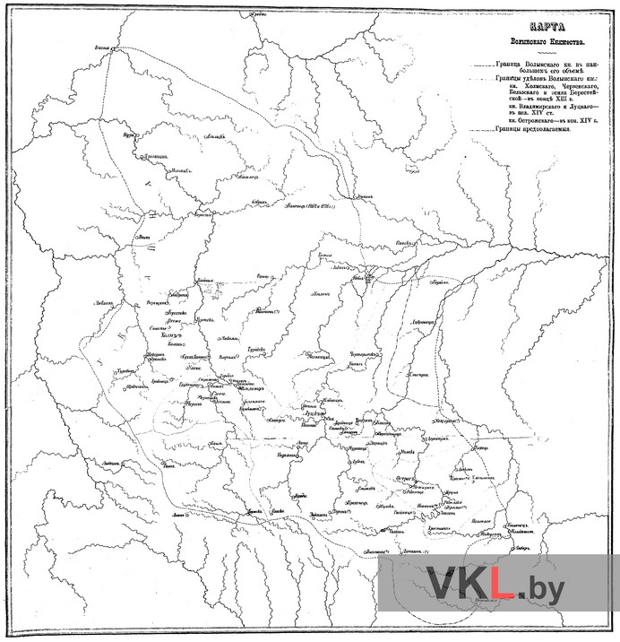 Карта Валынскага княства. З працы: Андрияшев А.М. Очерк истории Волынской земли до конца XIV столетия. Киев, 1887.