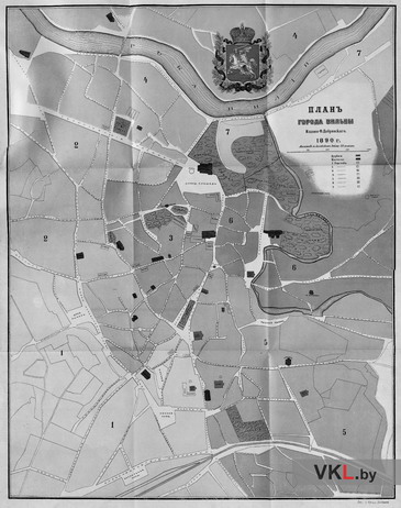 План Вільні 1890 г. З працы: Крачковский Ю. Старая Вильна до конца XVII столетия. Вильна, 1893.